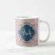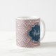 Dark Red Deco Scallops Navy Blue Monogram Name Coffee Mug