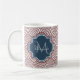 An elegant dark red art deco arched scallop pattern mug with a navy blue quatrefoil badge you can personalise by easily adding your own monogram and name. This is part of the Spiced Apple Scallops Sailor Blue Monogram Spring Collection.