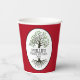 Family reunion paper cups with a family tree with your Surname and reunion year on a dark red backgound.