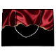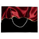 A gift bag with a faux satin design. Dark red with folds and a gold glitter edge.
