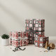 Set of three wrapping paper sheets with different patterns. Each sheet features a seamless mosaic geometric pattern in dark red, dark grey and white.