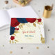 Romantic dark red & navy blue flowers with gold leaves botanical wedding guest book