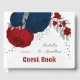 Romantic dark red & navy blue flowers with silver leaves botanical wedding guest book