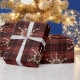DARK RED PLAID PATTERN WITH GOLD ORNAMENTS WRAPPING PAPER