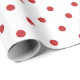 A wrapping paper built with a dark red polka dot pattern with a large distance between the dots on a white background. Customise the white background in an easy way.