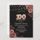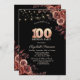 Dark Red Roses,String Lights Black 100th Birthday Invitation