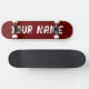 Skateboard deck featuring a rich dark red design with customisable name space. Perfect for street skating, tricks, or as a bold and personalised gift for skateboard enthusiasts.