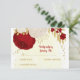Romantic dark red & white flowers with gold leaves botanical wedding response card.