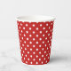 Red paper cups with a pattern of white polka dots to complement your party table decor. Illustrated and designed by Patricia Alvarez.