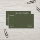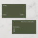 Minimalist business card in dark , rich green background . This colour is called chive . It comes with light grey fonts . Personalise both sides now . You can edit the colours - you can add more info - image /logo etc .It comes 100 in a pack .