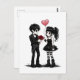 A darkly cute Valentine’s postcard for lovers of all things gothic. This design features an adorable goth couple dressed in black, holding a heart balloon and blood-red roses.
