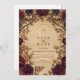 This dark romantic floral design sets a dramatic and elegant tone for your wedding, featuring deep burgundy roses, dried botanicals, and flowing Art Nouveau linework. The warm antique parchment background adds richness and texture, creating a vintage-inspired look that feels timeless and emotive. Soft shadows, muted florals, and intricate detailing wrap your event information in a moody, luxurious atmosphere. Personalize the text to craft a sophisticated keepsake that celebrates your day with style.