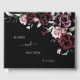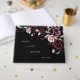 This dark floral romantic wedding guest book features watercolor painted dark roses, bride and groom name in an elegant modern font and handwritten script.