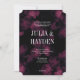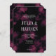 Wedding invitations, part of the dark red roses wedding suite. Simple modern text in white over a vintage, dark black and red garden roses background. This floral wedding set is perfect for dark gothic weddings as well as elegant modern weddings.