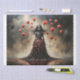 A gothic-inspired tissue paper design featuring a dark, elegant woman emerging from the water, wrapped in a flowing gown. Red roses adorn her figure, blending seamlessly with her form as if nature and soul were one.