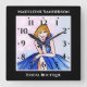 Dark Royal Blue Cocktail Gown Fashion Illustration Square Wall Clock