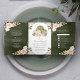Dark Sage Green Pumpkin Dusty Peach Floral Wedding Tri-Fold Invitation