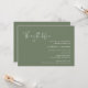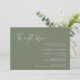 The night before... Make sure everything is perfect for the big day; get some modern invitations for your wedding rehearsal dinner. A modern typography and a trendy sage green colour for your wedding stationery: choose this simple and elegant wedding suite. Fully customisable: you can change the background as well as the text colour as you like.