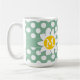 Dark Sea Green Polka Dots; Daisy Coffee Mug