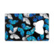 Realistic, blue and white butterflies seamless pattern on black background.