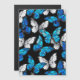 Realistic, blue and white butterflies seamless pattern on black background.