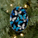 Dark Seamless Pattern with Blue Butterflies Morpho Ceramic Ornament