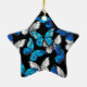 Dark Seamless Pattern with Blue Butterflies Morpho Ceramic Ornament