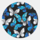 Dark Seamless Pattern with Blue Butterflies Morpho Classic Round Sticker