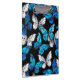 Realistic, blue and white butterflies seamless pattern on black background.