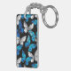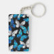 Dark Seamless Pattern with Blue Butterflies Morpho Key Ring