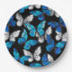Dark Seamless Pattern with Blue Butterflies Morpho Paper Plate