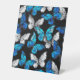 Realistic, blue and white butterflies seamless pattern on black background.