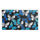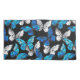 Realistic, blue and white butterflies seamless pattern on black background.