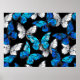Dark Seamless Pattern with Blue Butterflies Morpho Poster