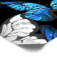 Realistic, blue and white butterflies seamless pattern on black background.