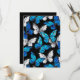 Realistic, blue and white butterflies seamless pattern on black background.