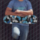 Dark Seamless Pattern with Blue Butterflies Morpho Skateboard
