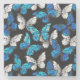 Realistic, blue and white butterflies seamless pattern on black background.