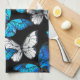 Dark Seamless Pattern with Blue Butterflies Morpho Tea Towel