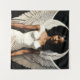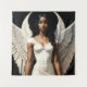 Tapestry features celestial being artwork of a beautiful melanated woman as a heavenly angel with large, white wings wearing a white dress.