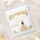 This birthday party favour bag features faux glitter champagne peach cream floral flowers and a beautiful princess with dark skin hair and an elegant dress. This is perfect for a birthday party.