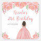 This birthday party sticker features faux glitter pink floral flowers and a beautiful princess with dark skin and an elegant dress. This is perfect for a birthday party.