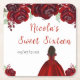 This sweet sixteen coaster features faux glitter red floral flowers and a beautiful princess with dark skin and an elegant dress. This is perfect for a sweet sixteen birthday party.