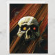 Evil skull with glowing eye sockets and a dark background spattered with streaks of orange, maroon, and black. Happy Halloween, mortals.