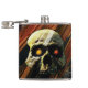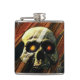 Evil skull with glowing eye sockets and a dark background spattered with streaks of orange, maroon, and black. Happy Halloween, mortals.