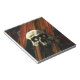Evil skull with glowing eye sockets and a dark background spattered with streaks of orange, maroon, and black. Happy Halloween, mortals.