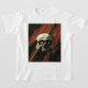 Evil skull with glowing eye sockets and a dark background spattered with streaks of orange, maroon, and black. Happy Halloween, mortals.