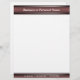Letterhead featuring a sophisticated design with a dark burgundy gradient at the top and bottom of the page with silver-like band accents. It can be customised with your business or personal name at the top and your address and phone information at the bottom. Can be perfectly paired with our Dark Sophisticated business cards or stationery.