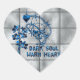A partial skull with a flaming heart at one end of the barbed wire design and the words "dark soul warm heart" with a sprig of cherry blossoms defines your depth of character and darkness of spirit.