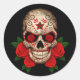 Dark Sugar Skull with Red Roses Classic Round Sticker